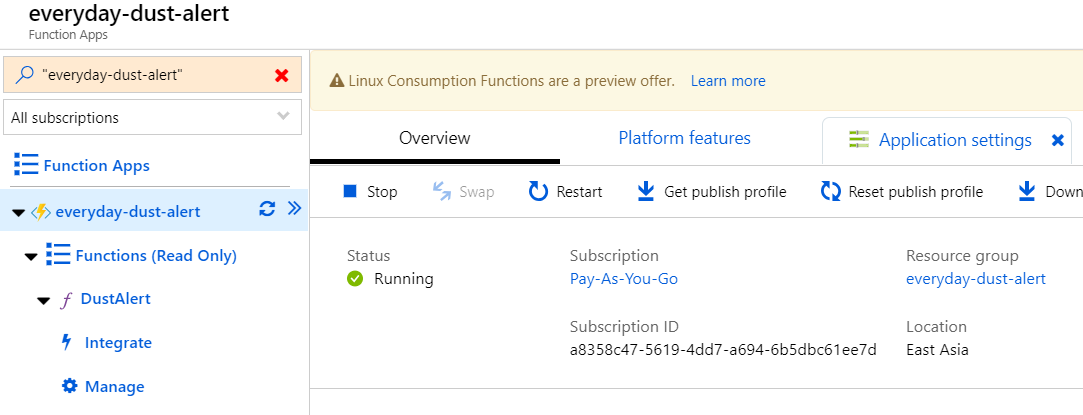 다시 Azure Portal로 돌아가서 Function App 카테고리를 클릭해보면, 업로드가 완료되었다.